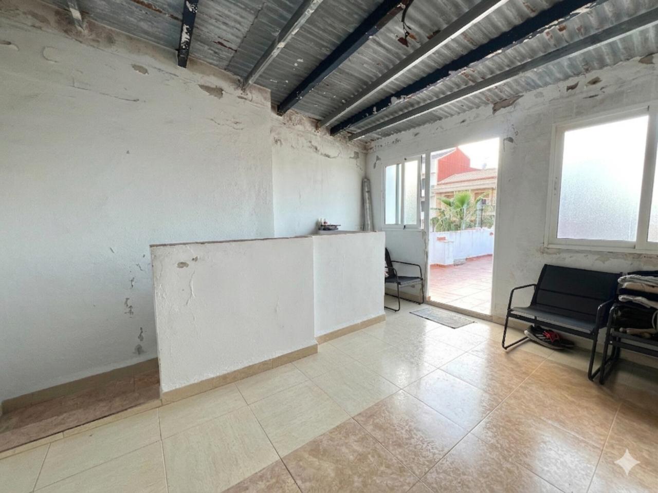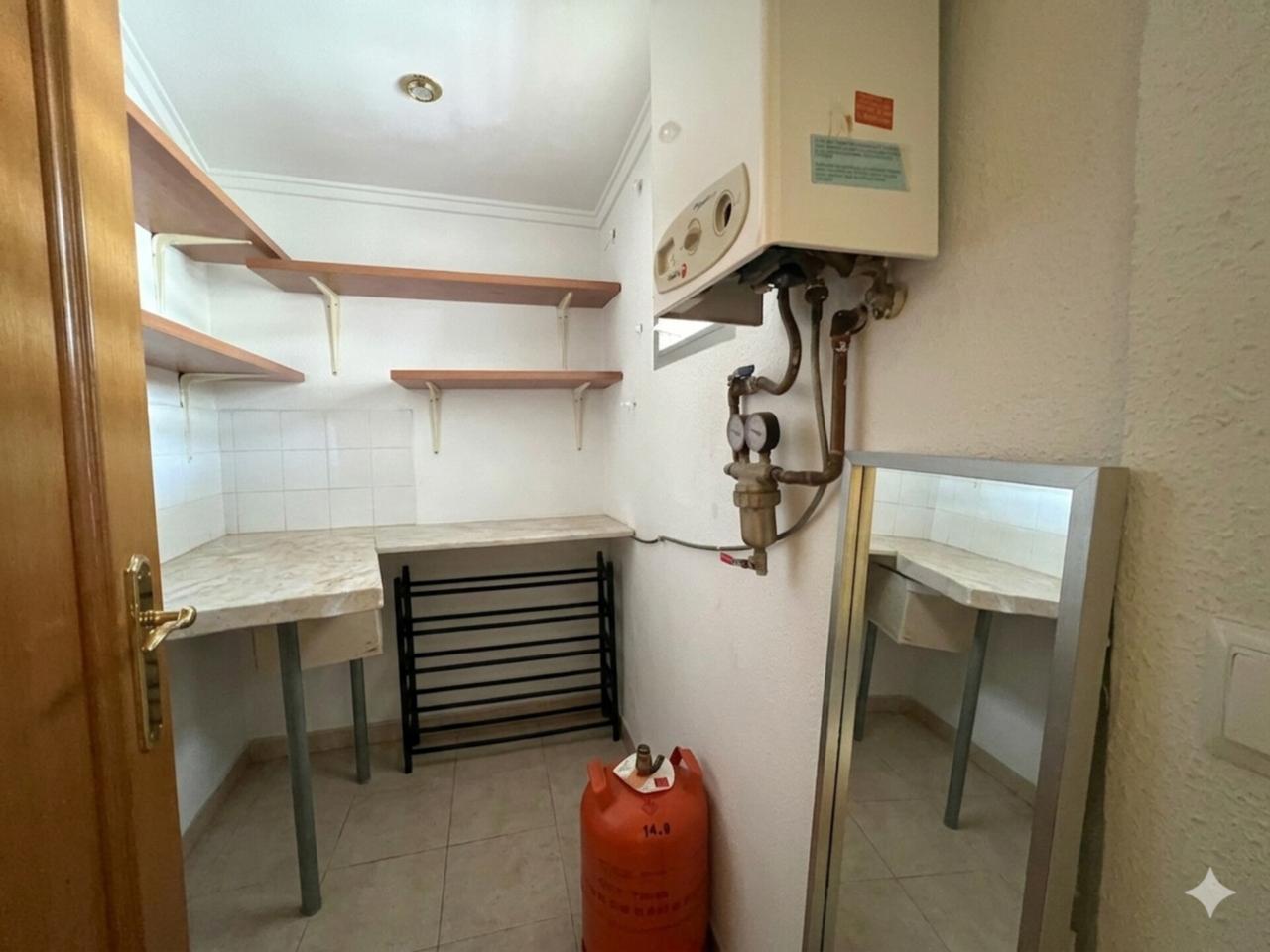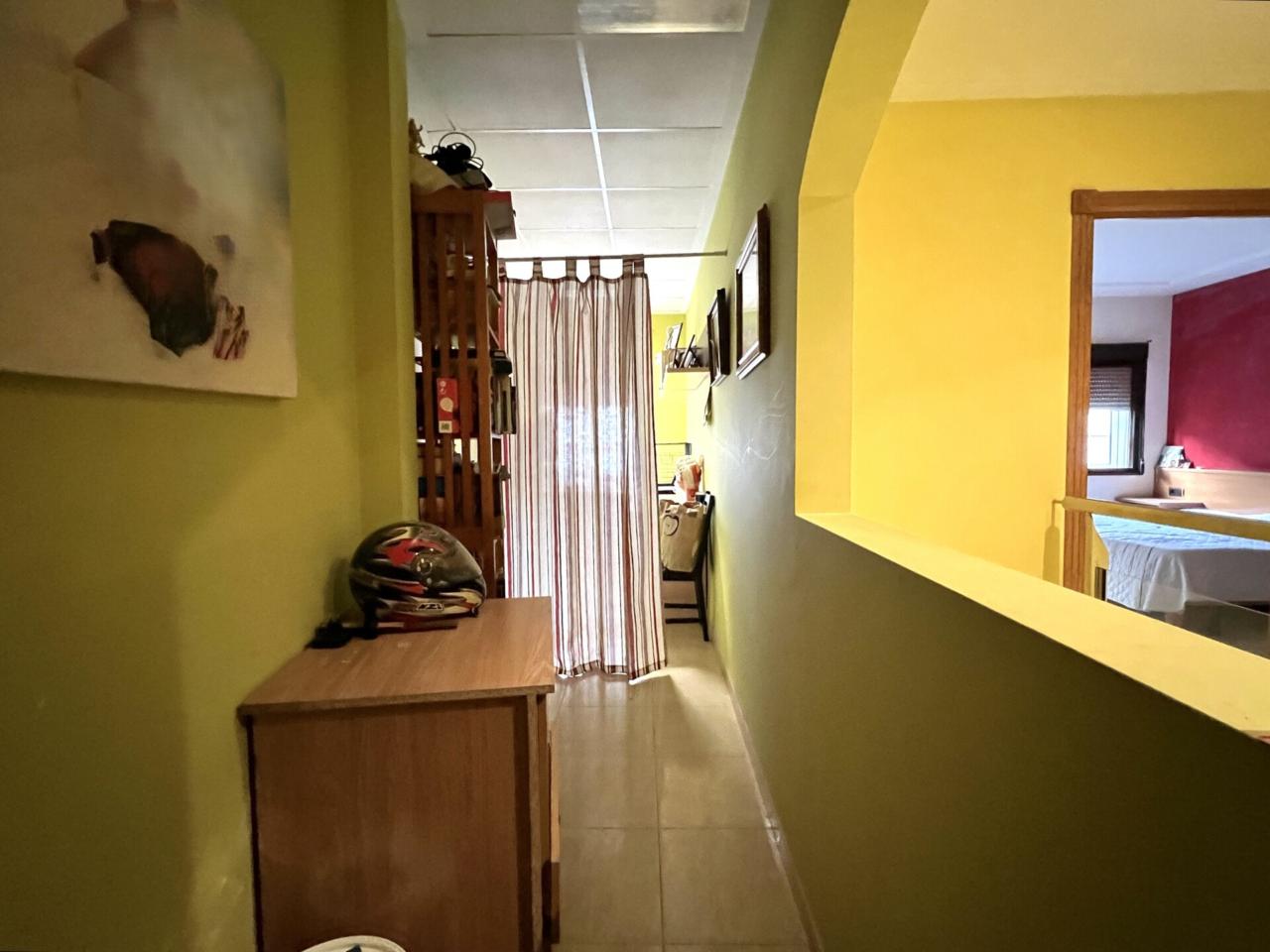 En planta baja encontramos un recibidor de entrada, salón-comedor, cocina con barra y despensa, dos habitaciones (ambas con armarios empotrados), un baño completo y un patio interior que aporta luz y ventilación a la vivienda.