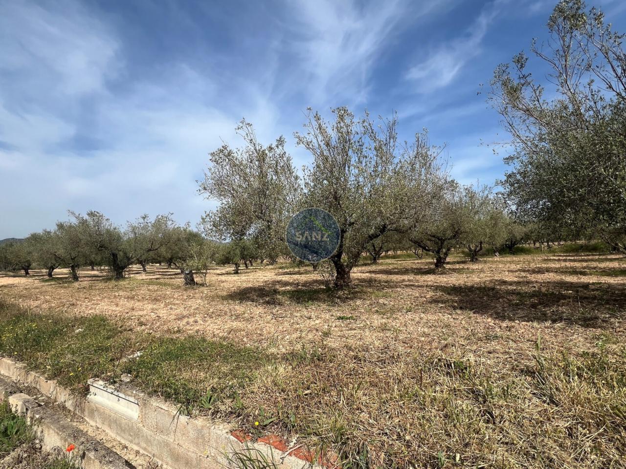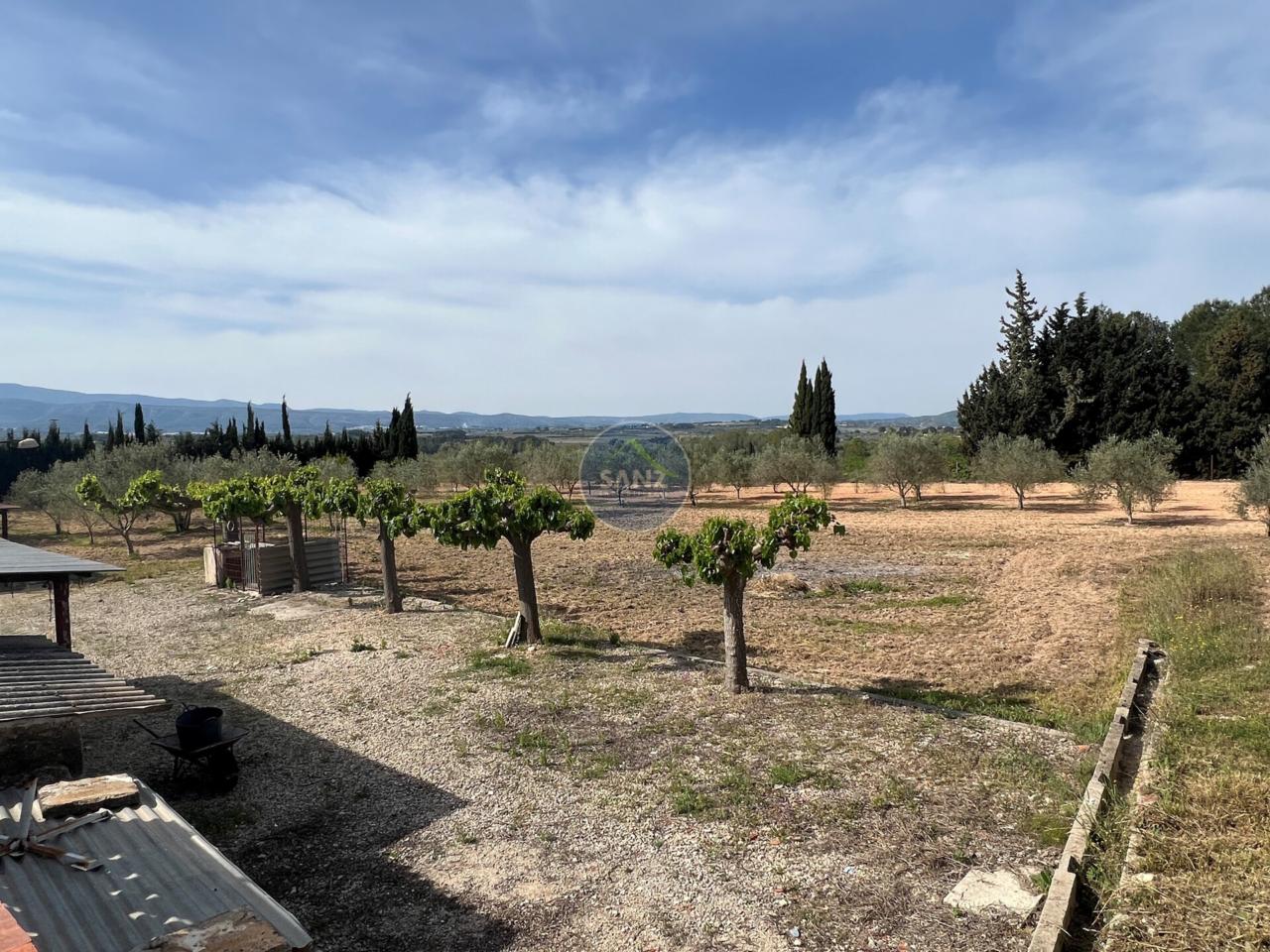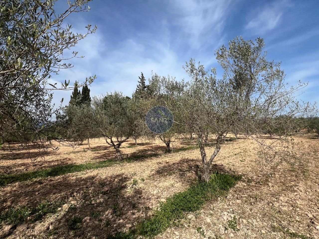 La parcela combina una zona ajardinada cuidada con el resto del terreno plantado de olivos, aportando privacidad y entorno natural.
