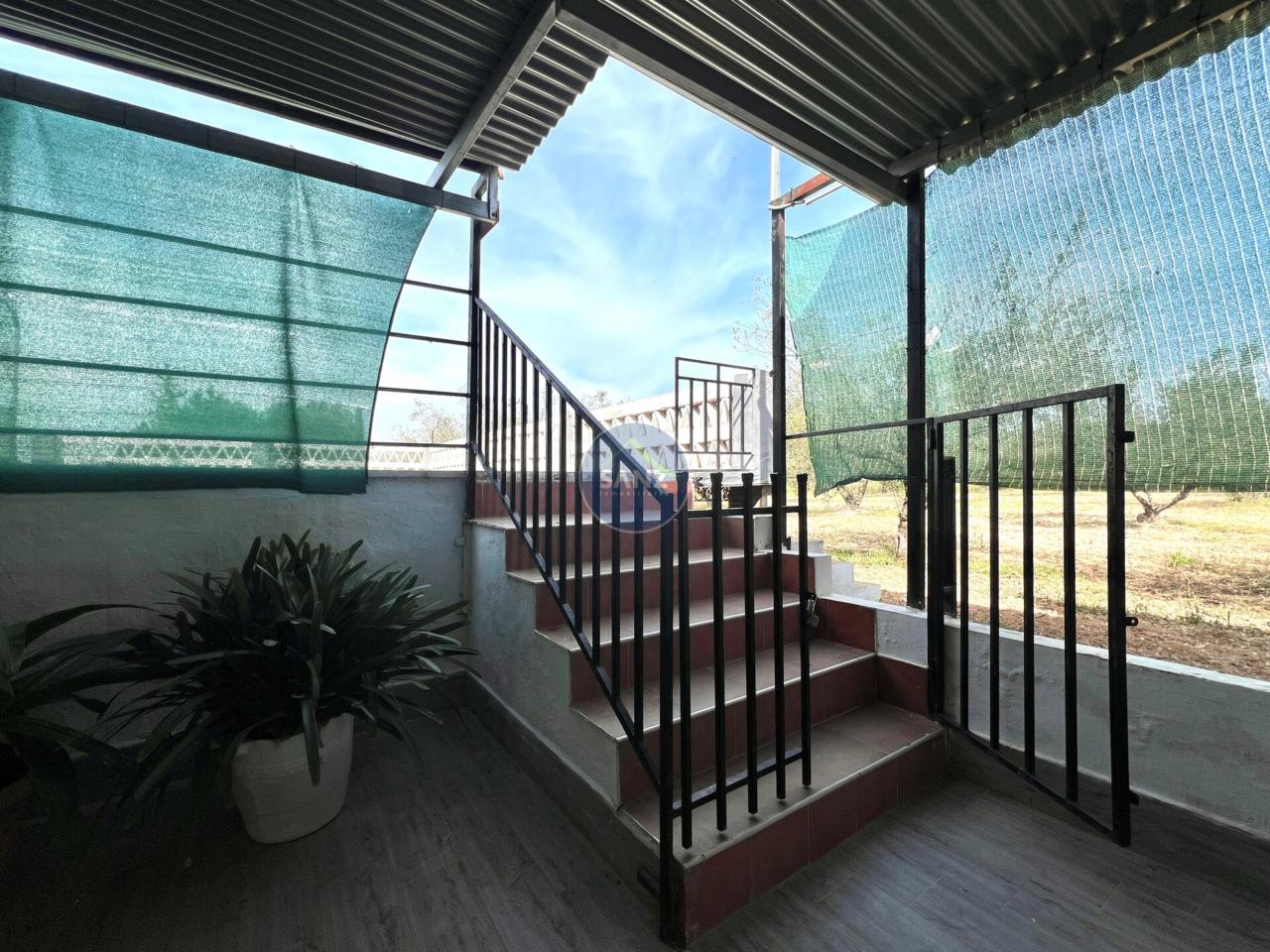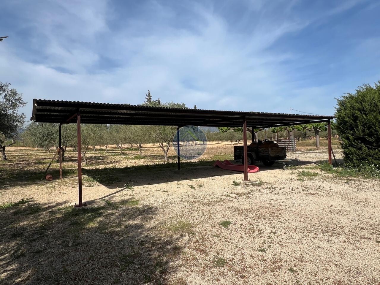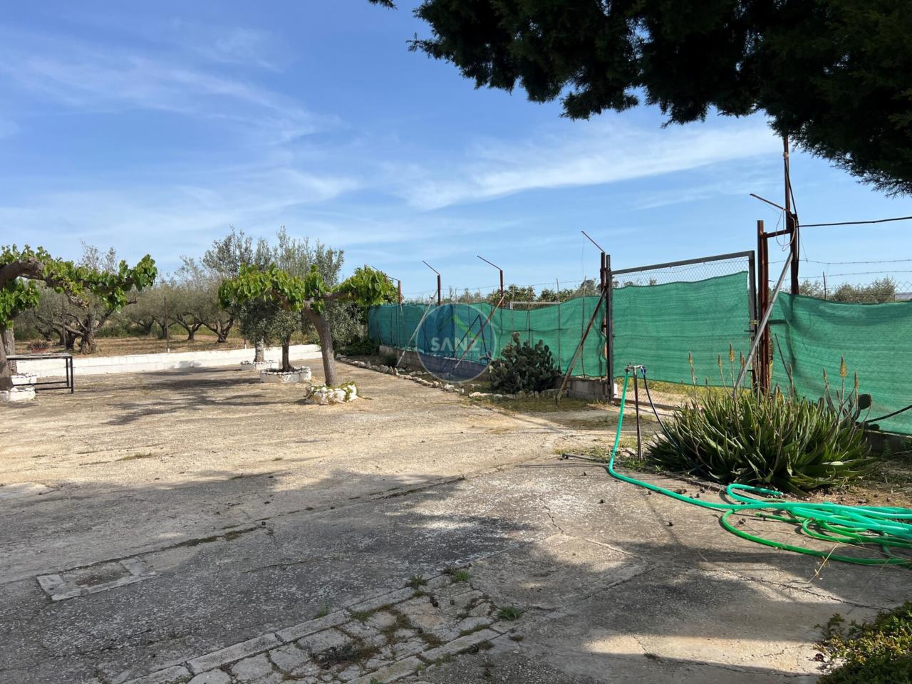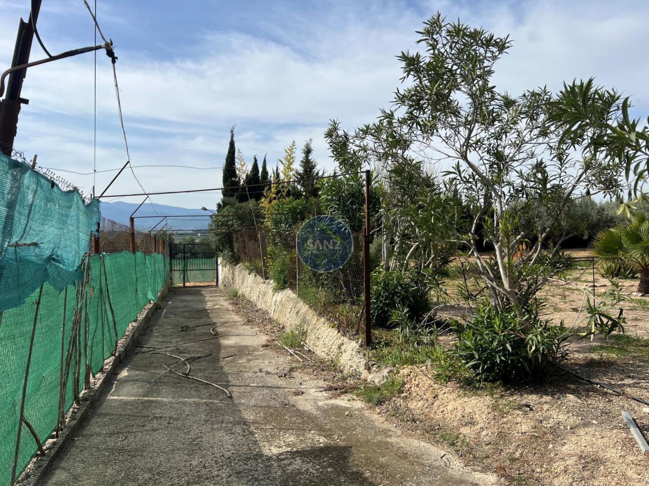 La parcela combina una zona ajardinada cuidada con el resto del terreno plantado de olivos, aportando privacidad y entorno natural.